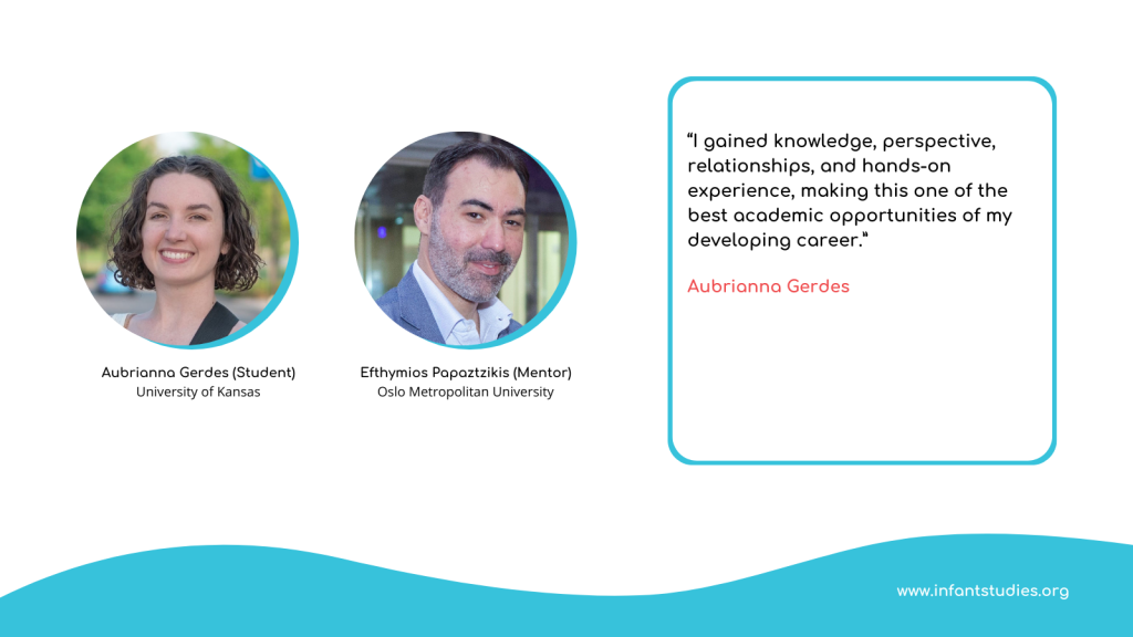 Serving as a mentor in this program was inspiring—I was able to watch Jocelyn grow as both a scientist and a collaborator. The fellowship provides invaluable opportunities for undergraduates to engage in hands-on research while allowing mentors to help shape the next generation of scholars in infancy studies.